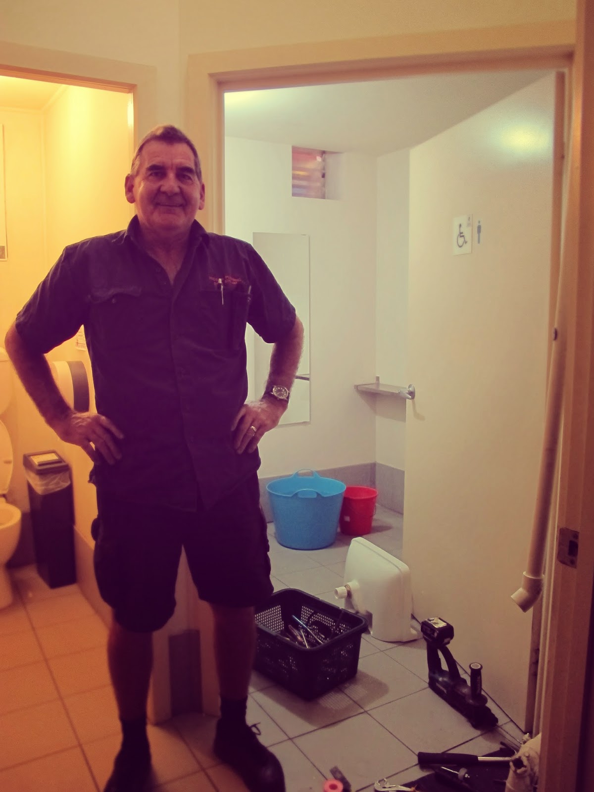 | Norm reckons we've got a good sink donated to us and shows us his handy work |